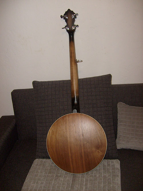 Rezonátor laminovaný z dýhy, navrchu ořech, luby višeň ze segmentů.