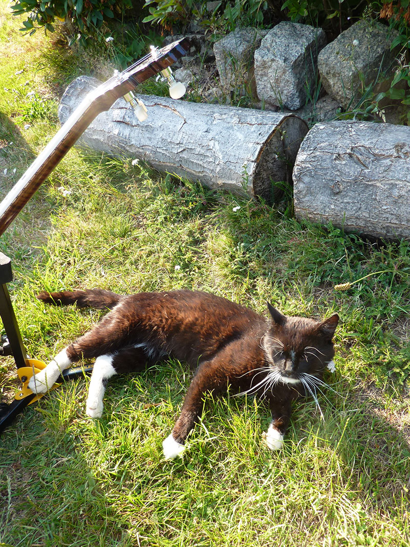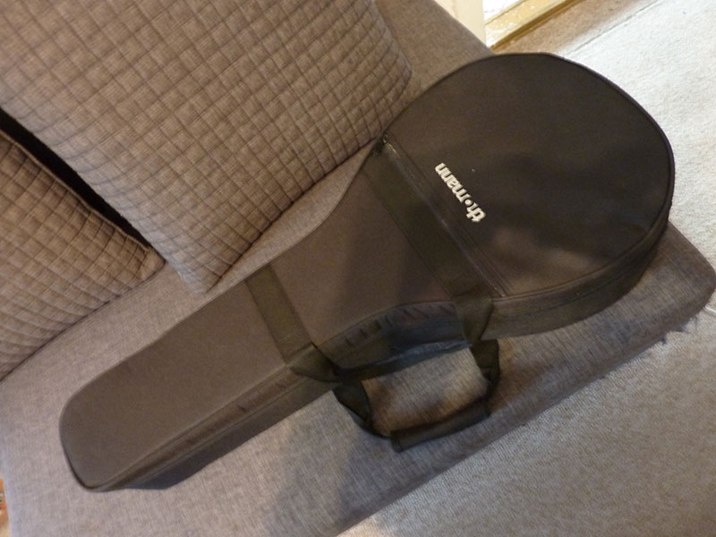 Jak je vidět, je absolutně animals friendly. Průměr blány 9 palců (228,6 mm) jej předurčuje pro děti nebo jako cestovní na dovolenou. Vejde se do pouzdra na mandolu a celé se to vejde do nadhlavního boxu na zavazadla v letadle. Tato verze má čtyřstrunný krk s širokou škálou možností ladění podle instalovaných strun - plectrum, tenor, ukulele, ale je možný i pětistrunný krk. Dřevo krku tygrovaný javor, hmatník palisandr, korpus massaranduba plus duralový tonering, rezonátor ořechová kořenice. Je to malý a do ruky šikovný nástroj se slušným zvukem.